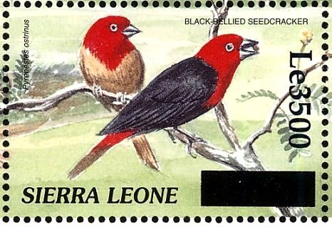 Visibility: public Image owner: none postage 3/10/2008 3500le multi issue=2008 surcharges h dt=birds of Africa (2000 Sierra Leone) d=black-bellied seedcracker Pyrenestes ostrinus oc=blk on=600le-Pyrenestes ostrinus unwmk perf=14.25 Crops No visible images cropped from this one. Measurements Resolution is unknown. Source Source name: Colnect File URL: http://i.colnect.net/b/3561/489/Black-bellied-Seedcracker-nbsp--nbsp--nbsp--nbsp-Pyrenestes-ostrinus.jpg Uploaded June 7, 2017, 3:13 pm by Stan Shebs |