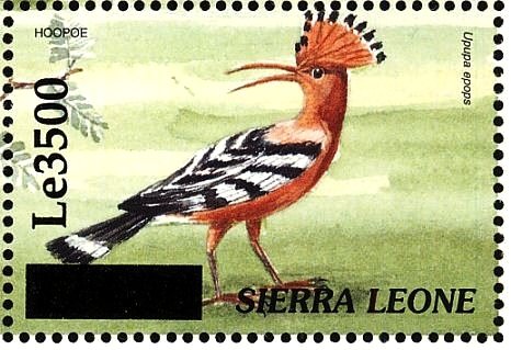 Visibility: public Image owner: none postage 3/10/2008 3500le multi issue=2008 surcharges h dt=birds of Africa (2000 Sierra Leone) d=hoopoe Upupa epops (2000 Sierra Leone) oc=blk on=600le-Upupa epops unwmk perf=14.25 Crops No visible images cropped from this one. Measurements Resolution is unknown. Source Source name: Colnect File URL: http://i.colnect.net/b/3561/490/Eurasian-Hoopoe-nbsp--nbsp--nbsp--nbsp-Upupa-epops.jpg Uploaded June 7, 2017, 3:13 pm by Stan Shebs |