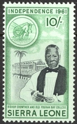 Visibility: public Image owner: none postage 4/27/1961 10sh grn&blk issue=independence d=Bishop Crowther & Old Fourah Bay College wmk=St Edwards crown & SL perf=13.5 Crops No visible images cropped from this one. Measurements Resolution is unknown. Source Source name: Colnect File URL: http://i.colnect.net/b/3687/566/Bishop-Crowther-and-old-Fouran-Bay-College.jpg Uploaded June 7, 2017, 3:48 pm by Stan Shebs |