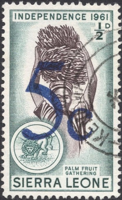 Visibility: public Image owner: none postage 8/4/1964 5c blgrn&graypur issue=1964 surcharges d=palm fruit gathering ovpt=value oc=blk on=4/27/1961-1/2d wmk=St Edwards crown & SL perf=13.5 Crops No visible images cropped from this one. Measurements Resolution is unknown. Source Source name: Colnect File URL: http://i.colnect.net/b/3689/712/MiSL-189-surcharged.jpg Uploaded June 7, 2017, 3:50 pm by Stan Shebs |
