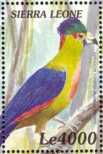 Visibility: public Image owner: none postage 1/4/2000 4000le multi dt=birds of Africa (2000 Sierra Leone) d=Ruwenzori turaco Musophaga johnstoni unwmk perf=14.25 Crops No visible images cropped from this one. Measurements Resolution is unknown. Source Source name: Colnect File URL: http://i.colnect.net/b/3807/393/Ruwenzori-Turaco-Ruwenzorornis-johnstoni.jpg Uploaded June 7, 2017, 4:30 pm by Stan Shebs |