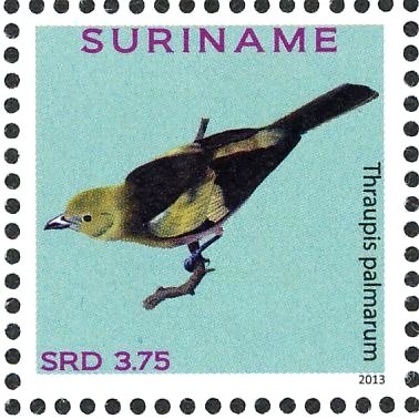 Visibility: public Image owner: none postage 2/20/2013 $3.75 multi issue=Birds 2013 dt=birds (2013 Surinam) d=Thraupis palmarum unwmk perf=14 Crops No visible images cropped from this one. Measurements Resolution is unknown. Source Source name: Colnect File URL: http://i.colnect.net/b/3837/173/Palm-Tanager Thraupis-palmarum.jpg Uploaded June 10, 2017, 2:58 am by Stan Shebs |