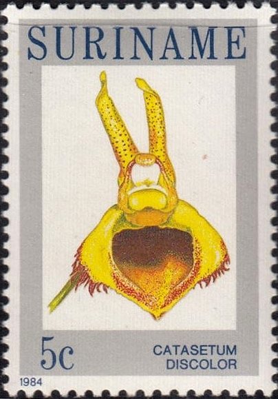 Visibility: public Image owner: none postage 1/11/1984 5c multi dt=orchids (1984 Surinam) d=Catasetum discolor unwmk perf=12.75x14 Crops No visible images cropped from this one. Measurements Resolution is unknown. Source Source name: Colnect File URL: http://i.colnect.net/b/3614/391/Catasetum-discolor.jpg Uploaded June 10, 2017, 3:25 am by Stan Shebs |