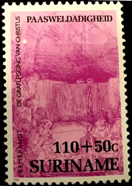 Visibility: public Image owner: none semipostal 4/9/1987 110+50c issue=Easter 1987 d="Entombment of Christ" - Rembrandt unwmk perf=12.75x14 Crops No visible images cropped from this one. Measurements Resolution is unknown. Source Source name: Colnect File URL: http://i.colnect.net/b/3629/573/The-grave.jpg Uploaded June 10, 2017, 3:31 am by Stan Shebs |