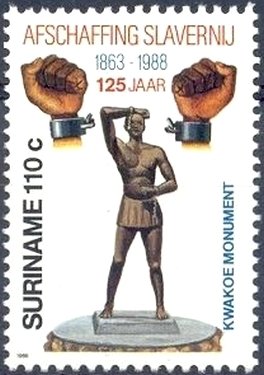 Visibility: public Image owner: none postage 6/29/1988 110c ultra issue=125th Anniversary of Abolition of Slavery unwmk perf=12.75x14 Crops No visible images cropped from this one. Measurements Resolution is unknown. Source Source name: Colnect File URL: http://i.colnect.net/b/3629/615/Kwakoe-Monument.jpg Uploaded June 10, 2017, 3:33 am by Stan Shebs |