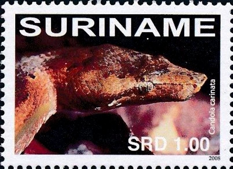 Visibility: public Image owner: none postage 5/21/2008 $1.00 multi issue=Snakes 2008 dt=snakes (2008 Surinam) d=Candoia carinata unwmk perf=14 Crops No visible images cropped from this one. Measurements Resolution is unknown. Source Source name: Colnect File URL: http://i.colnect.net/b/4028/771/Candoia-carinata.jpg Uploaded June 10, 2017, 4:23 am by Stan Shebs |