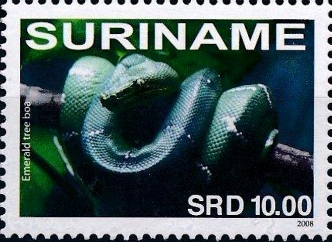 Visibility: public Image owner: none postage 5/21/2008 $10.00 multi issue=Snakes 2008 dt=snakes (2008 Surinam) d=Morelia viridis unwmk perf=14 Crops No visible images cropped from this one. Measurements Resolution is unknown. Source Source name: Colnect File URL: http://i.colnect.net/b/4028/777/Morelia-viridis.jpg Uploaded June 10, 2017, 4:23 am by Stan Shebs |