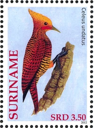 Visibility: public Image owner: none postage 5/23/2012 $3.50 multi issue=Birds 2012 dt=birds (2012 Surinam) d=Celeus undatus (2012) unwmk perf=14 Crops No visible images cropped from this one. Measurements Resolution is unknown. Source Source name: Colnect File URL: http://i.colnect.net/b/3837/161/Waved-Woodpecker Celeus-undatus.jpg Uploaded June 10, 2017, 4:29 am by Stan Shebs |