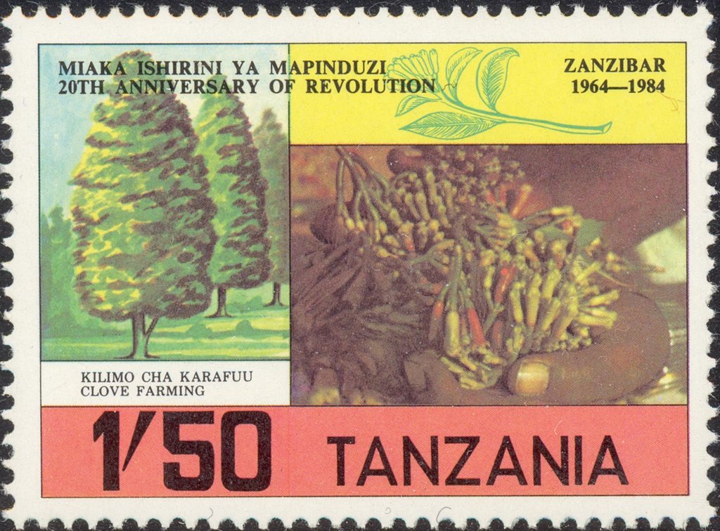 Visibility: public Image owner: none postage 6/18/1984 1.50sh multi issue=20th Anniversary of Zanzibar Revolution unwmk perf=14 Crops No visible images cropped from this one. Measurements Resolution is unknown. Source Source name: Colnect File URL: http://i.colnect.net/b/2974/204/Cloves-Spice.jpg Uploaded June 12, 2017, 5:37 pm by Stan Shebs |