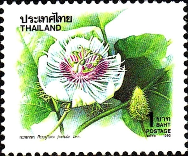 Visibility: public Image owner: none postage 11/15/1993 1b multi issue=New Year 1994 d=Passiflora foetida (1993 Thailand) wmk=squares & rectangles perf=14.25x14.5 Crops No visible images cropped from this one. Measurements Resolution is unknown. Source Source name: Colnect File URL: http://i.colnect.net/b/3435/008/Passiflora-foetida.jpg Uploaded June 12, 2017, 7:22 pm by Stan Shebs |