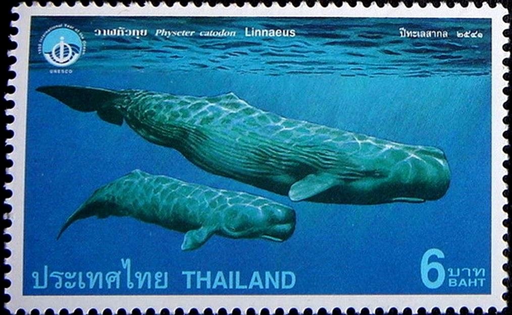 Visibility: public Image owner: none postage 7/19/1998 6b multi issue=International Year of the Ocean dt=marine mammals (1998 Thailand) d=Physeter macrocephalus (1998) unwmk perf=14.75x14 Crops No visible images cropped from this one. Measurements Resolution is unknown. Source Source name: Colnect File URL: http://i.colnect.net/b/3411/413/Sperm-Whale-Physeter-macrocephalus.jpg Uploaded June 12, 2017, 7:33 pm by Stan Shebs |