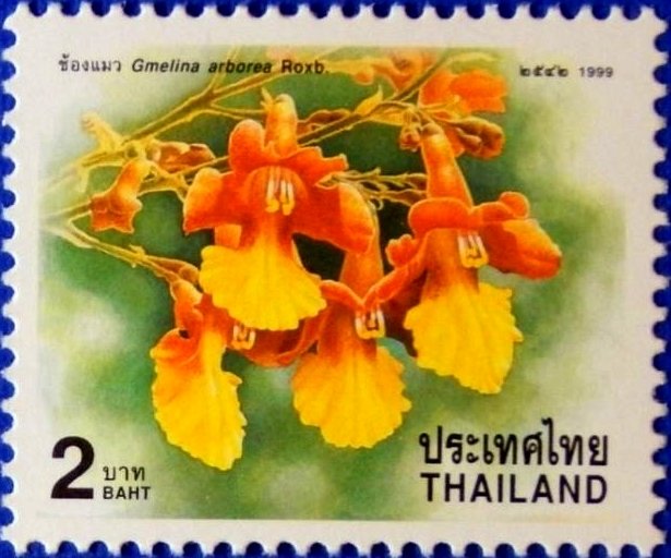 Visibility: public Image owner: none postage 11/15/1999 2b multi issue=New Year 2000 d=Gmelina arborea perf=14.5x14.25 Crops No visible images cropped from this one. Measurements Resolution is unknown. Source Source name: Colnect File URL: http://i.colnect.net/b/3394/199/Gmelina-arborea.jpg Uploaded June 12, 2017, 7:37 pm by Stan Shebs |