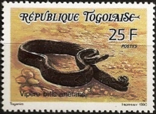 Visibility: public Image owner: none postage 5/22/1990 25fr multi dt=reptiles (1990 Togo) d=Bitis arietans (1990) unwmk perf=13.25 Crops No visible images cropped from this one. Measurements Resolution is unknown. Source Source name: Colnect File URL: http://i.colnect.net/b/3661/809/Bitis-arietans.jpg Uploaded June 13, 2017, 4:04 pm by Stan Shebs |