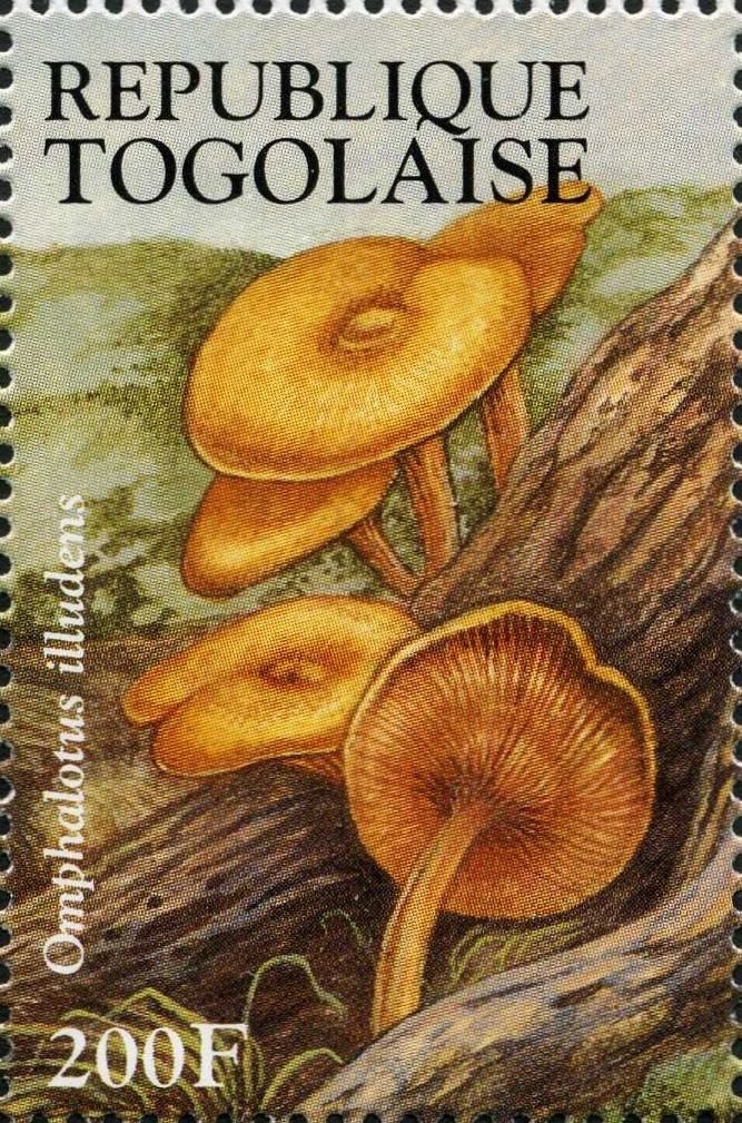 Visibility: public Image owner: none postage 11/16/1995 200fr multi dt=Fungi (1995 Togo) d=Omphalotus illudens (1995) unwmk perf=14 Crops No visible images cropped from this one. Measurements Resolution is unknown. Source Source name: Colnect File URL: http://i.colnect.net/b/3251/169/Omphalotus-illudens.jpg Uploaded June 13, 2017, 4:10 pm by Stan Shebs |