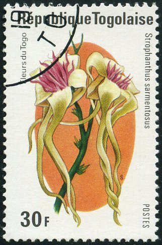 Visibility: public Image owner: none postage 2/15/1975 30fr multi dt=flowers (1975 Togo) d=Strophanthus sarmentosus (1975) unwmk perf=14 Crops No visible images cropped from this one. Measurements Resolution is unknown. Source Source name: Colnect File URL: http://i.colnect.net/b/3727/049/Strophanthus-sarmentosus.jpg Uploaded June 13, 2017, 7:17 pm by Stan Shebs |