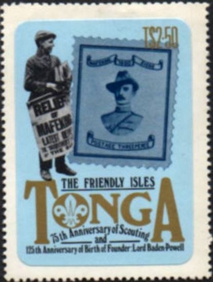 Visibility: public Image owner: none postage 2/22/1982 2.50pa multi issue=75th Anniversary of Boy Scout Movement and the 125th Anniversary of Robert Baden-Powell, 1857-1941 wmk=mult crown & script CA Crops No visible images cropped from this one. Measurements Resolution is unknown. Source Source name: Colnect File URL: http://i.colnect.net/b/3533/332/The-Friendly-Isles.jpg Uploaded June 13, 2017, 8:25 pm by Stan Shebs |