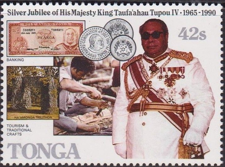 Visibility: public Image owner: none postage 7/4/1990 42s multi issue=King Tāufaʻāhau Tupou IV accession 25th wmk=mult crown & script CA Crops No visible images cropped from this one. Measurements Resolution is unknown. Source Source name: Colnect File URL: http://i.colnect.net/b/3670/168/King-Taufa-ahau-Tupou-IV.jpg Uploaded June 13, 2017, 8:54 pm by Stan Shebs |