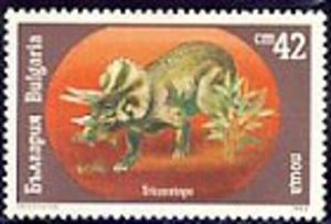Visibility: public Image owner: none postage 6/19/1990 42s multi dt=dinosaurs (1990 Bulgaria) d=Triceratops (1990) unwmk perf=12.5x12.25 Crops No visible images cropped from this one. Measurements Resolution is unknown. Source Source name: Colnect (old) File URL: http://i.colnect.net/images/f/447/358/Prehistoric-animals.jpg Uploaded December 3, 2012, 6:21 am by Stan Shebs |