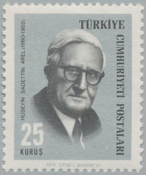 Visibility: public Image owner: none postage 3/30/1966 25k dt=Cultural Celebrities d=H. S. Arel unwmk perf=13.5 Crops No visible images cropped from this one. Measurements Resolution is unknown. Source Source name: Colnect File URL: http://i.colnect.net/b/2578/400/H-uuml-seyin-Sadettin-Arel-1880-1955-musicologist.jpg Uploaded June 15, 2017, 3:14 pm by Stan Shebs |