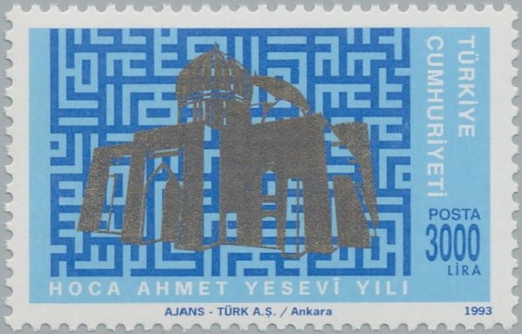Visibility: public Image owner: none postage 7/28/1993 3000l multi issue=900th Anniversary of the Birth of Hoca Ahmet Yesevi unwmk perf=13.25x13 Crops No visible images cropped from this one. Measurements Resolution is unknown. Source Source name: Colnect File URL: http://i.colnect.net/b/2674/006/Yesevi-Mausoleum-Turkestan-Kazakhstan.jpg Uploaded June 15, 2017, 3:16 pm by Stan Shebs |