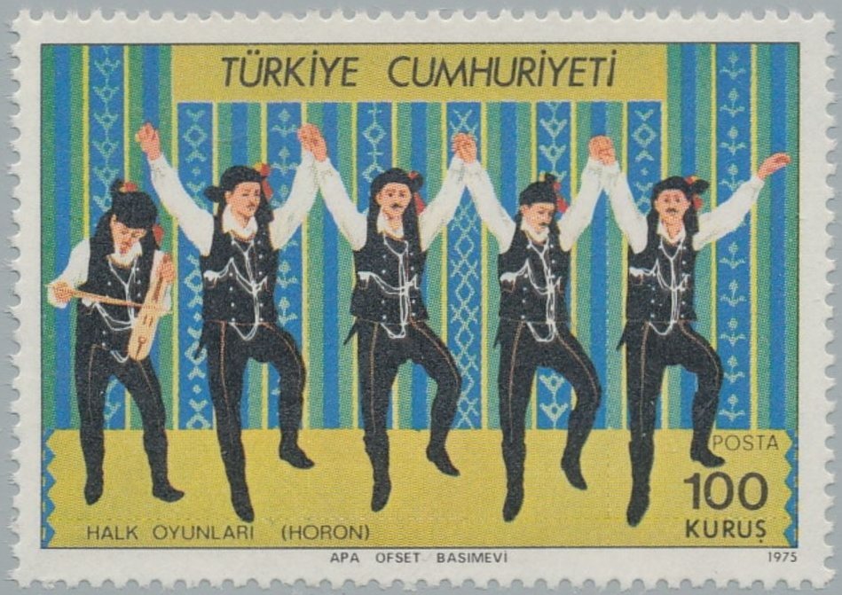 Visibility: public Image owner: none postage 8/30/1975 100k blue&multi issue=1975 regional folk dances dt=dance scenes d=Horon folk dance unwmk perf=13 Crops No visible images cropped from this one. Measurements Resolution is unknown. Source Source name: Colnect File URL: http://i.colnect.net/b/2579/488/Folk-dancing.jpg Uploaded June 15, 2017, 3:24 pm by Stan Shebs |