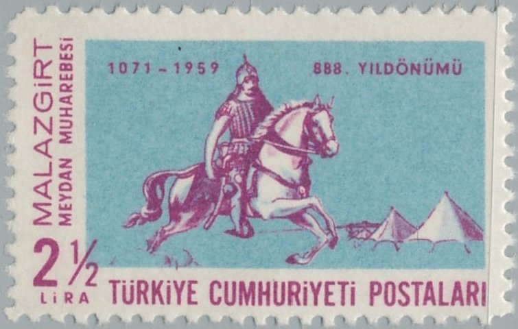 Visibility: public Image owner: none postage 8/26/1959 2 1/2l pur&turq issue=Malazkirt battle 888th unwmk perf=11 Crops No visible images cropped from this one. Measurements Resolution is unknown. Source Source name: Colnect File URL: http://i.colnect.net/b/2576/300/Malazgirt-battle.jpg Uploaded June 15, 2017, 3:58 pm by Stan Shebs |