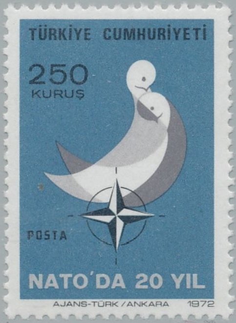 Visibility: public Image owner: none postage 2/18/1972 250k multi issue=20th Anniversary of Turkey's Membership in NATO unwmk perf=13x13.5 Crops No visible images cropped from this one. Measurements Resolution is unknown. Source Source name: Colnect File URL: http://i.colnect.net/b/2579/181/Nato.jpg Uploaded June 15, 2017, 4:49 pm by Stan Shebs |