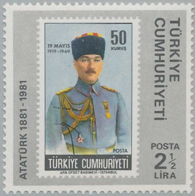 Visibility: public Image owner: none postage 5/19/1981 2 1/2l multi issue=100th Anniversary of the Birth of Kemal Ataturk d=Ataturk in 1919 unwmk perf=14.25x14.75 Crops No visible images cropped from this one. Measurements Resolution is unknown. Source Source name: Colnect File URL: http://i.colnect.net/b/2588/555/Ataturk-in-Uniform-TR2135.jpg Uploaded June 15, 2017, 4:54 pm by Stan Shebs |