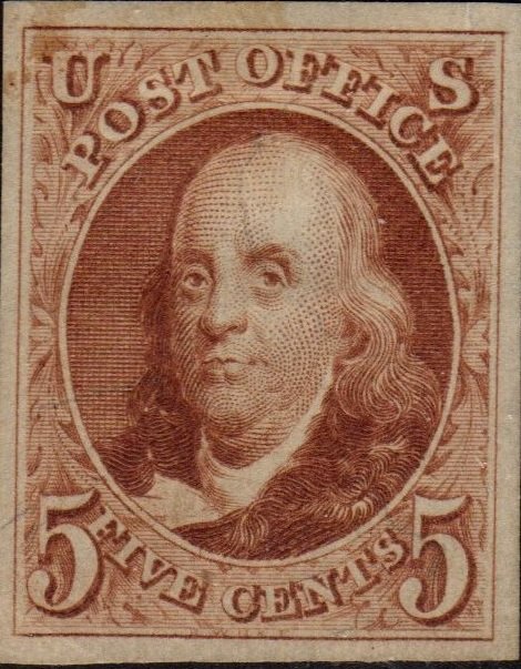 Visibility: public Image owner: none postage 5c redbrn issue=1875 special 1847 d=Franklin (1847) unwmk imperf Crops No visible images cropped from this one. Measurements Resolution is unknown. Source Source name: Colnect File URL: http://i.colnect.net/b/4052/294/Benjamin-Franklin-1706-1790-leading-author-and-politician.jpg Uploaded June 17, 2017, 2:28 pm by Stan Shebs |