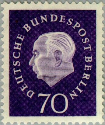 Visibility: public Image owner: none postage 70pf dlpur d=Heuss wmk=DBP & rosettes perf=14 Crops No visible images cropped from this one. Measurements Resolution is unknown. Source Source name: Colnect File URL: http://i.colnect.net/b/154/926/Prof-Dr-Theodor-Heuss-1884-1963.jpg Uploaded December 3, 2012, 10:55 pm by Stan Shebs |
