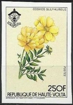 Visibility: public Image owner: none postage 6/15/1984 250f multi issue=Mushrooms and Flowers d=Cosmos sulphureus unwmk Crops No visible images cropped from this one. Measurements Resolution is unknown. Source Source name: Colnect File URL: http://i.colnect.net/b/2892/779/Cosmos-sulphureus.jpg Uploaded June 19, 2017, 1:48 pm by Stan Shebs |