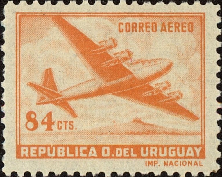 Visibility: public Image owner: none airmail 7/13/1959 84c org issue=1952 air d=Four-motored plane wmk=REPUBLICA O. DEL URUGUAY Crops No visible images cropped from this one. Measurements Resolution is unknown. Source Source name: Colnect File URL: http://i.colnect.net/b/4091/569/Douglas-DC-4.jpg Uploaded June 19, 2017, 6:39 pm by Stan Shebs |