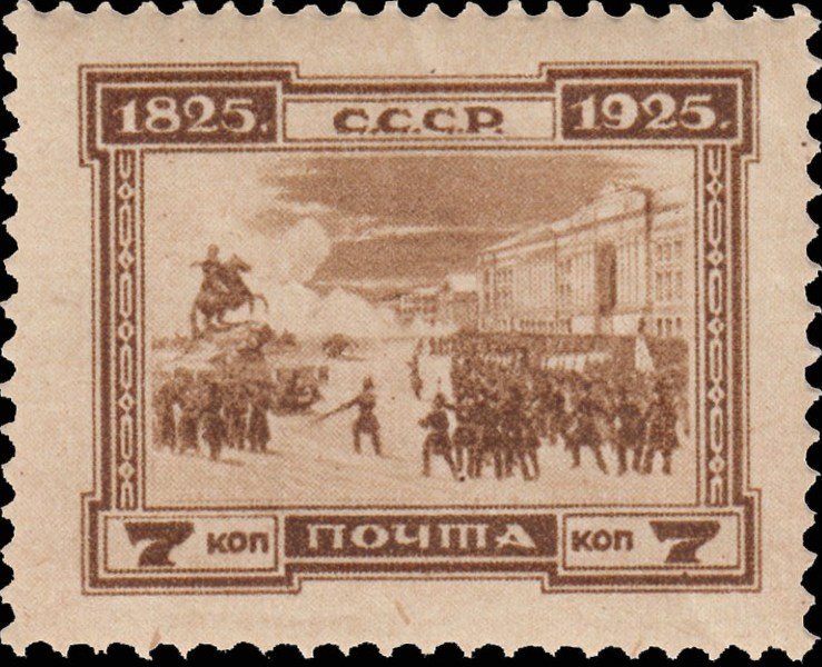 Visibility: public Image owner: none postage 12/28/1925 7k brn issue=Decembrists revolt 100th d=Decembrists at the Senate Square by Dmitry Kardovsky wmk=Greek border & rosettes perf=13.5 Crops No visible images cropped from this one. Measurements Resolution is unknown. Source Source name: Colnect File URL: http://i.colnect.net/b/2692/624/-Decembrists-at-the-Senate-Square--by-Dmitry-Kardovsky.jpg Uploaded June 19, 2017, 7:50 pm by Stan Shebs |