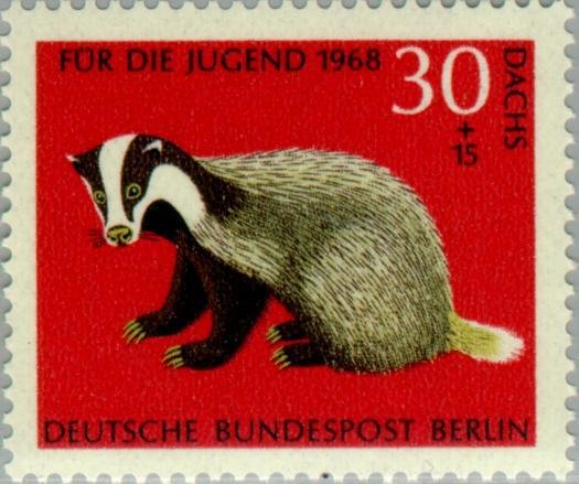 Visibility: public Image owner: none semipostal 2/2/1968 30+15pf multi issue=youth 1968 dt=animals (1968 Germany) d=European badger unwmk Crops No visible images cropped from this one. Measurements Resolution is unknown. Source Source name: Colnect File URL: http://i.colnect.net/b/155/076/European-Badger-Meles-meles.jpg Uploaded December 4, 2012, 1:06 am by Stan Shebs |