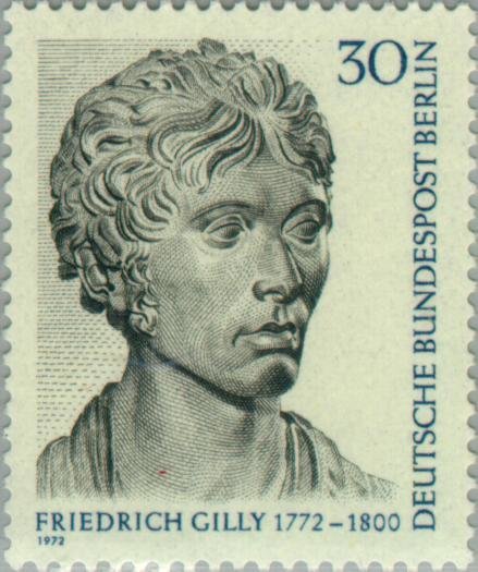 Visibility: public Image owner: none postage 2/4/1972 30(pf) blk&bl issue=Friedrich Gilly 200th d=Friedrich Gilly unwmk Crops No visible images cropped from this one. Measurements Resolution is unknown. Source Source name: Colnect File URL: http://i.colnect.net/images/b/155/198/Friedrich-Gilly-1772-1800.jpg Uploaded August 25, 2014, 5:24 pm by Stan Shebs |