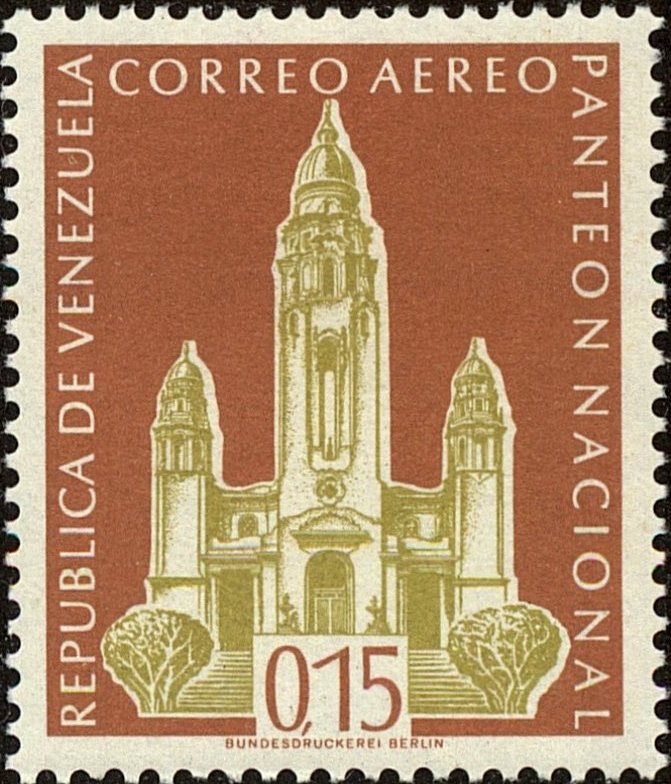 Visibility: public Image owner: none airmail 5/9/1960 0.15b multi d=National Pantheon unwmk perf=14 Crops No visible images cropped from this one. Measurements Resolution is unknown. Source Source name: Colnect File URL: http://i.colnect.net/b/3787/637/National-Pantheon-Caracas.jpg Uploaded June 21, 2017, 12:03 pm by Stan Shebs |