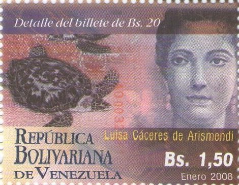 Visibility: public Image owner: none postage 5/7/2008 1.50b multi dt=Coins and Banknotes of the New Currency d=Note to 20 Bolívares Luisa Cáceres de Arismendi 1799-1860 unwmk perf=12.25 Crops No visible images cropped from this one. Measurements Resolution is unknown. Source Source name: Colnect File URL: http://i.colnect.net/b/4065/711/Note-to-20-Bolívares--Luisa-Cáceres-de-Arismendi-1799-1860.jpg Uploaded June 21, 2017, 2:12 pm by Stan Shebs |