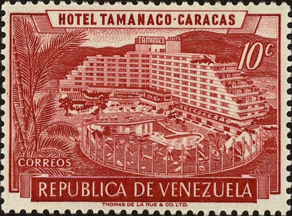 Visibility: public Image owner: none postage 10/10/1957 10c car issue=Hotel Tamanaco d=Hotel Tamanaco unwmk perf=13 Crops No visible images cropped from this one. Measurements Resolution is unknown. Source Source name: Colnect File URL: http://i.colnect.net/b/2803/396/Hotel-Tamanaco-Caracas.jpg Uploaded June 21, 2017, 2:35 pm by Stan Shebs |