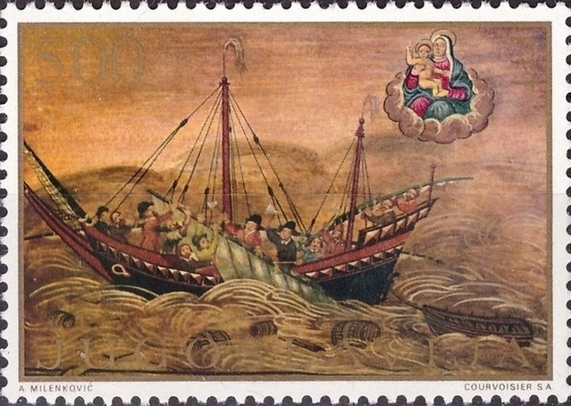 Visibility: public Image owner: none postage 7/10/1969 5d gold&multi issue=Dubrovnik festival 20th dt=ship paintings (1969) d=caravel in Distress unwmk perf=11.75 Crops No visible images cropped from this one. Measurements Resolution is unknown. Source Source name: Colnect File URL: http://i.colnect.net/b/2976/260/-Caravel-in-Distress-.jpg Uploaded June 22, 2017, 2:51 pm by Stan Shebs |