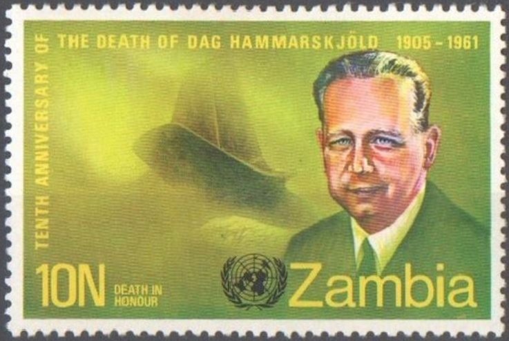 Visibility: public Image owner: none postage 9/18/1971 10n multi issue=Dag Hammarskjold death 10th d=tail of downed plane unwmk Crops No visible images cropped from this one. Measurements Resolution is unknown. Source Source name: Colnect File URL: http://i.colnect.net/b/3428/955/Hammarskjold---Tail-of-Aircraft.jpg Uploaded June 22, 2017, 6:23 pm by Stan Shebs |
