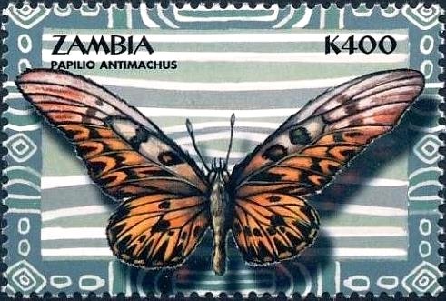 Visibility: public Image owner: none postage 2/8/2000 400k multi issue=Butterflies of Africa 2000 dt=butterflies (2000 Zambia) d=Papilio antimachus (2000) unwmk Crops No visible images cropped from this one. Measurements Resolution is unknown. Source Source name: Colnect File URL: http://i.colnect.net/b/3505/115/Papilio-antimachus.jpg Uploaded June 22, 2017, 7:06 pm by Stan Shebs |