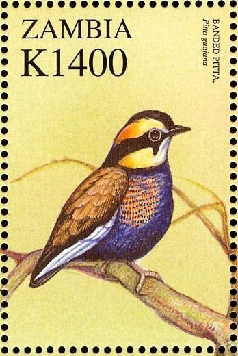 Visibility: public Image owner: none postage 9/8/2000 1400k multi issue=Birds of the World unwmk Crops No visible images cropped from this one. Measurements Resolution is unknown. Source Source name: Colnect File URL: http://i.colnect.net/b/3507/687/Malayan-Banded-Pitta - Hydrornis-irena.jpg Uploaded June 22, 2017, 7:07 pm by Stan Shebs |