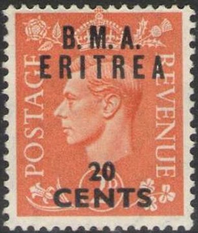 Visibility: public Image owner: none postage 6/1948 20c ltorg issue=1948 d=King George VI (1937 a) ovpt=B.M.A.//ERITREA//20//CENTS oc=blk on=issuer=Great Britain-2p-ltorg-King George VI wmk=crown & GVIR perf=15x14 Crops No visible images cropped from this one. Measurements Resolution is unknown. Source Source name: Colnect File URL: http://i.colnect.net/b/3276/070/British-Stamp-Overprinted--BMA-Eritrea-.jpg Uploaded June 22, 2017, 10:08 pm by Stan Shebs |