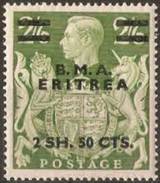 Visibility: public Image owner: none postage 6/1948 2sh50c yelgrn issue=1948 d=King George VI & arms of Britain ovpt=bars bars//B.M.A.//ERITREA//2 SH. 50 CTS. oc=blk on=issuer=Great Britain-1942-2sh6p-yelgrn wmk=crown & large GVIR Crops No visible images cropped from this one. Measurements Resolution is unknown. Source Source name: Colnect File URL: http://i.colnect.net/b/3276/086/British-Stamp-Overprinted--BMA-Eritrea-.jpg Uploaded June 22, 2017, 10:08 pm by Stan Shebs |