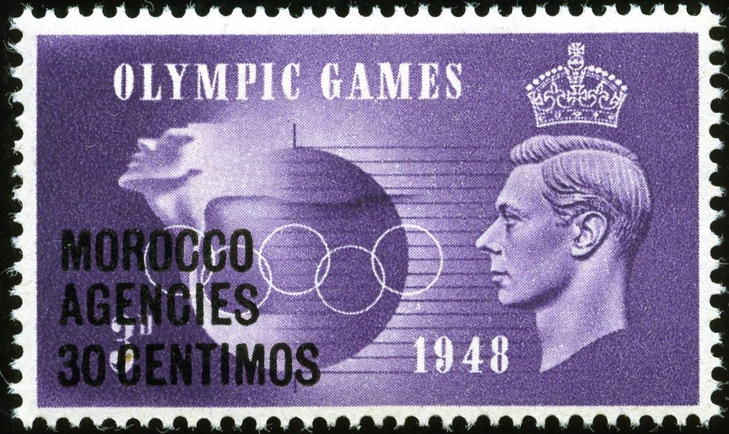Visibility: public Image owner: none postage 7/29/1948 30c dpvio issue=Olympics 1948 d=torch & Olympic rings & globe ovpt=Morocco//Agencies oc=blk on=issuer=Great Britain-7/29/1948-3d wmk=crown & GVIR perf=15x14 Crops No visible images cropped from this one. Measurements Resolution is unknown. Source Source name: Colnect File URL: http://i.colnect.net/b/4070/232/Olympic-Games.jpg Uploaded June 23, 2017, 12:15 pm by Stan Shebs |