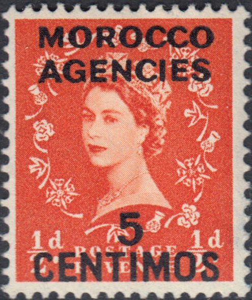 Type: stamp Issuer: British offices in Morocco, Spanish currency Date: 1956 Denom: ?