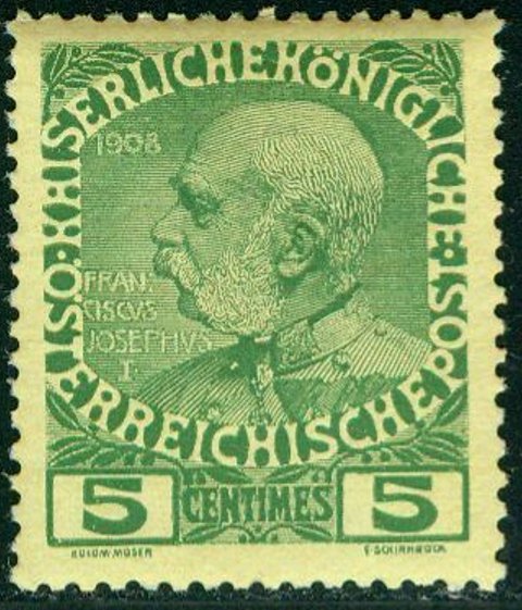 Visibility: public Image owner: none postage 5c grn pc=yel issue=Franz Josef accession 60th Crops No visible images cropped from this one. Measurements Resolution is unknown. Source Source name: Colnect File URL: http://i.colnect.net/b/2991/974/Emperor-Franz-Joseph-1848-1916.jpg Uploaded June 23, 2017, 2:46 pm by Stan Shebs |