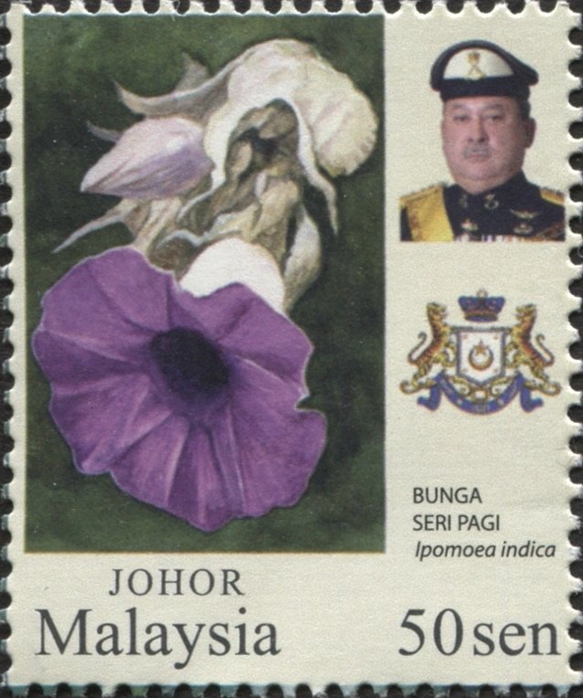 Visibility: public Image owner: none postage 2/25/2016 50sen multi issue=2016 Johor dt=garden flowers (2007) d=Ipomoea indica & Sultan Ibrahim Ismail of Johor Crops No visible images cropped from this one. Measurements Resolution is unknown. Source Source name: Colnect File URL: http://i.colnect.net/b/3241/398/Ipomoea-indica-with-portrait-of-Sultan-Ibrahim.jpg Uploaded June 23, 2017, 3:25 pm by Stan Shebs |