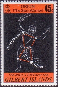 Visibility: public Image owner: none postage 2/20/1978 45c org&blk issue=The night sky over the Gilbert Islands d=Orion Crops No visible images cropped from this one. Measurements Resolution is unknown. Source Source name: Colnect File URL: http://i.colnect.net/b/3349/574/Orion-with-Betelgeuse-and-Rigel.jpg Uploaded June 25, 2017, 4:13 am by Stan Shebs |