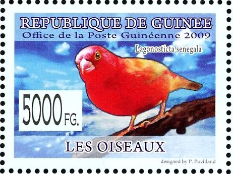 Visibility: public Image owner: none postage 2/25/2009 5000fr multi issue=Birds 2009 d=Lagonosticta senegala (2009) unwmk perf=13 Crops No visible images cropped from this one. Measurements Resolution is unknown. Source Source name: Colnect File URL: http://i.colnect.net/b/3855/798/Red-billed-Firefinch-nbsp-Lagonosticta-senegala.jpg Uploaded June 26, 2017, 9:35 pm by Stan Shebs |